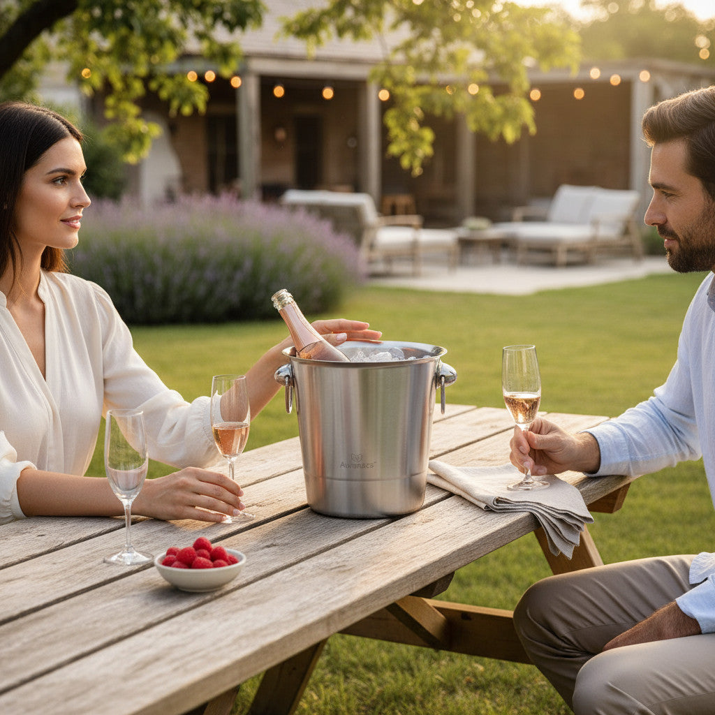 AURANACS® Tuscany | Refrigeratore per vino in acciaio inox | Elegante refrigeratore per champagne con capacità di 4,5 litri | Refrigeratore per champagne con finitura opaca | Secchiello per ghiaccio con 2 maniglie | Ø 20 cm | Perfetto per le feste